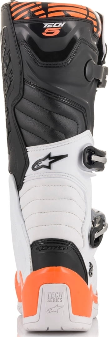 Całkowicie nowy model Alpinestars TECH 5 uzupełnia ofertę pomiędzy najwyższym modelem TECH 10 a najniższym TECH 3. Patrząc na model Alpinestars TECH 5 łatwo dostrzec wpływ przy projektowaniu właśnie modeli TECH 10 i TECH 3. Wąski profil przedniej części oraz płaska część środkowa pozwala na większą integrację z motocyklem jak w modelu TECH 10. Model TECH 3 wniósł solidny system zapięcia z mocnymi klamrami.