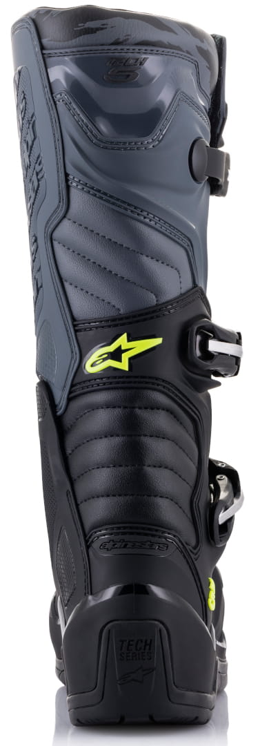 Całkowicie nowy model Alpinestars TECH 5 uzupełnia ofertę pomiędzy najwyższym modelem TECH 10 a najniższym TECH 3. Patrząc na model Alpinestars TECH 5 łatwo dostrzec wpływ przy projektowaniu właśnie modeli TECH 10 i TECH 3. Wąski profil przedniej części oraz płaska część środkowa pozwala na większą integrację z motocyklem jak w modelu TECH 10. Model TECH 3 wniósł solidny system zapięcia z mocnymi klamrami.