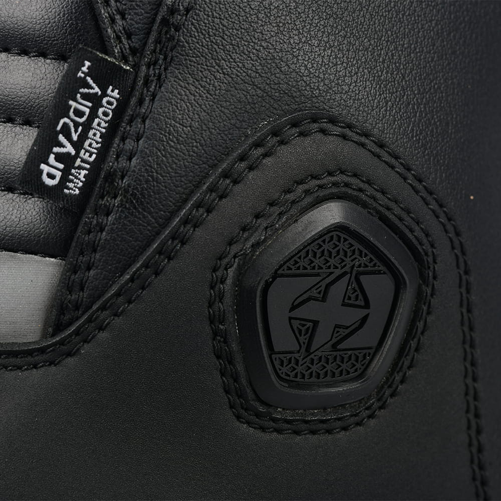 Wysokiej jakości turystyczne, skórzane, długie buty motocyklowe. Zapewniają komfort jazdy w najróżniejszych warunkach atmosferycznych dzięki wodoodpornej membranie. Elastyczne panele zapewniają swobodę ruchu, dodatkowo model posiada wzmocnienie na zmianę biegów. O bezpieczeństwo dba stabilizator kostki. Dostępne w czarnym wariancie kolorystycznym. Ten model oferuje kompletne rozwiązanie, które docenią motocykliści poszukujący praktycznego i wygodnego obuwia turystycznego.