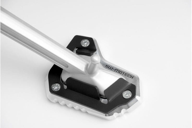 Atrakcyjna nakładka na nóżkę boczną, która przez zwiększenie powierzchni styku z gruntem, zapobiega zapadaniu się motocykla na nierównym jak i miękkim podłożu. Wykonana jest z wytrzymałego stopu aluminium anodowanego na kolor srebrny lub czarny. Kształt jest ściśle opracowany pod każdy motocykl, a precyzję zapewniają maszyny CNC. Dodatkowo górna blaszka wykonana jest ze stali nierdzewnej co sprawia, iż produkt jest bardzo wytrzymały niezależnie od warunków w których jest używany. Rowkowana górna krawędź, pomaga kierowcy łatwo odchylić nóżkę boczną nawet podczas noszenia ciężkich butów motocyklowych.